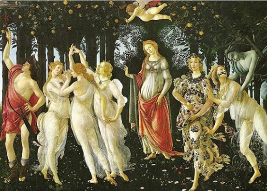 人文主义思想对于绘画的影响从14世纪开始就已经显现出来,直到20世纪,西方油画中的人体形象仍然被人文主义的光辉所笼罩。无论是文艺复兴时期的乔尔乔内、提香的作品还是20世纪阿基利·耶莫里的作品都是人文主义艺术的杰出代表。收藏于巴黎美爵艺术基金的阿基利·耶莫里《玫瑰山的拂晓》更因在创作手法及选材上与波提切利笔下的《春》有着异曲同工之妙,被誉为波提切利的“第二春”,受到了人文艺术收藏者的喜爱和推崇。