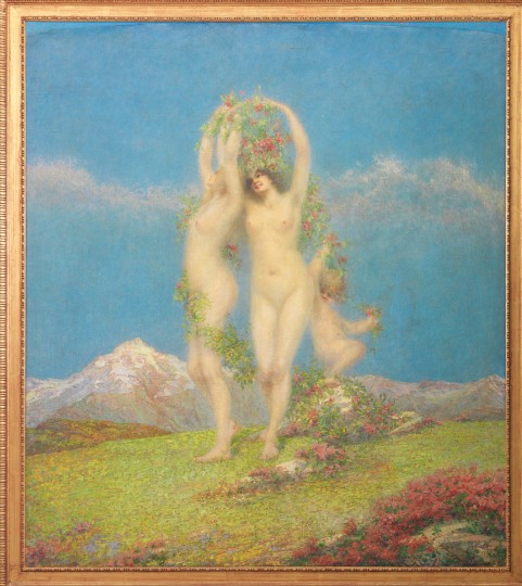 文艺复兴时期以神话为题材的人文创作风格虽然在后期其它流派的冲击下不再是主流创作方式,但它的影响一直持续至今。浪漫派绘画大师阿基利·耶莫里 (Achille JEMOLI 1878-1960)就是人文思想创作的追随者。他以神话和寓言题材的绘画吸引大批追随者。其作品以高度完整、技法全面和擅长运用浪漫主义手法表现女性人体而著称。在阿基利·耶莫里 (Achille JEMOLI)的画作里,女性的形象非常恬美,有妇女,仙女等人物。其环境多为乡间丛林,草地等场景,宁逸静瑟。在人物造型处理上,以唯美手法进行描绘,,富有大自然一切美的秉赋,画中的裸体是圣洁纯真的化身。