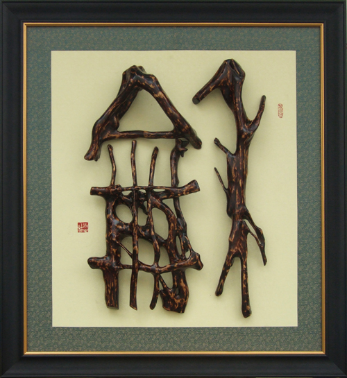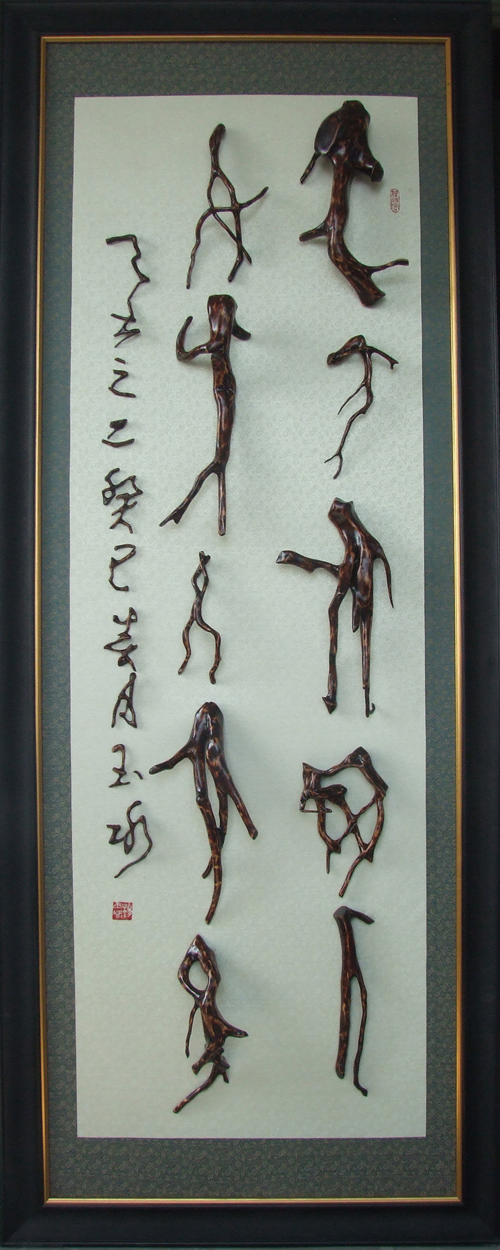 杨玉冰出生书香门第,自幼练习传统书法,从二十世纪八十年代开始对我国传统根艺进行研究与创作。在掌握传统根艺创作技艺的基础上,将我国“农耕文化”“传统吉祥物”“民俗风情”等人们喜闻乐见的题材及传统笔墨书法融入根艺创作中,形成了一门极具中国特色的根书法艺术。