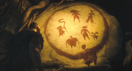 在动画《疯狂原始人》中,原始人咕噜一家之主Grug在岩壁上作画,记录家人和狩猎时的场景,生动形象。虽然整部动画充满夸张元素,但史前洞穴壁画艺术作为真实存在人类文化艺术之一,早已被现代人所熟知。