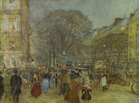19世纪末20世纪的初,画坛涌现出一批以巴黎美景为创作灵感的绘画巨匠。绘画大师弗瑞迪瑞克·安娜托勒·毋布戎(Frédéric Anatole HOUBRON)的《巴黎林荫大道》正是这个时期的代表作。