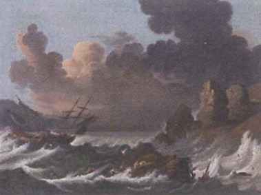 菲利普-捷克·德·卢戴尔布格(Philippe-Jacques de Loutherbourg1740 – 1812)是一名法国血统的英国画家。1772年在皇家学院举办了他的第一场展览,1781年被正式选为院士。同时期,他展出了自己的作品《Eidophusikon》成为了19世纪《全景图》的先驱者,因为其杰出的绘画才能,在1766年他被法兰西学书院选举为路易十五画家,成为了一名技艺高超的宫廷画师。《玛丽娜风暴》是在他18世纪末期的作品,该作品描绘例如一场剧烈的海上风暴,画面上强烈的空间感和光感,使观众彷如身临其境。《玛丽娜风暴》这幅作品具有强烈的巴洛克色彩,整幅画面充满了激情艺术,画面表现的空间感和立体感十分丰富,运动与变化感则把巴洛克艺术的灵魂表达的淋漓尽致。