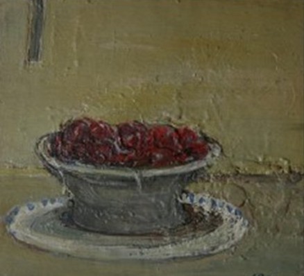 《泥土与水果》是雷米.艾融佳作之一,这幅作品的特点和看点就在于雷米用复杂的色彩组合构造了一个极具立体感的画面。就常见的空间技法来讲,透视或者远景对比为最常用也是最有效地表达空间感的方法,但在这幅作品中,我们都没有看到这两种手法。雷米.艾融采用了另外的一套系统——光影的结合和对比。在《泥土与水果》中,这种明与暗的比较也并非通过强烈的色彩反差造成,而是单纯的色彩组合表现就能达到空间感的视觉效果。光与影在色调的变化中表达,视觉的前点和后景在颜色的深浅中体现。对于盛樱桃的瓷盘看似有些用色杂乱,实则为浑然一体的呈现,没有分割,没有突兀的变化。让观者感觉平缓而细腻,但又不失层次感和视觉的质感。