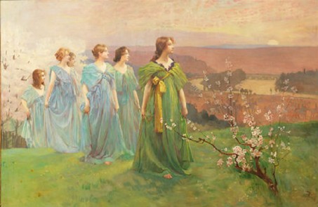 巴黎美爵基金相关负责人表示,这些油画画面反映出来的意境,既有典雅之风,又像在吟诵一首抒情的诗歌,折射出此类油画极高的文学性,无论是用色,还是选题,都属于清新风格的代表作品。将这些艺术作品引入收藏界,不仅极具艺术价值,更能彰显收藏者的高雅的情趣品位。整幅画作充满春的气息。画面远处正要喷薄而出的朝阳,蜿蜒的群山,近处旺盛的桃花,湿润而肥沃的土地,青绿的草色,就连众女神的曼妙裙装都洋溢着春天的色彩。让·保尔·西尼巴尔蒂笔下所刻画的春天是如此细腻,充满了浪漫与温情。春天的魔力与魅力在他的笔下是如此的传神和令人向往。让·保尔·西尼巴尔蒂让观众看到了世纪交替时刻的希望与曙光。