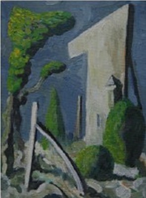雷米艾融的《形与树》在色彩运用中虽然只选择了灰蓝绿三个主色调,但是这些简单的色彩经过空间变形与比例变形的重新构架后,营造出了破败中的一派生机,寓意美好的生命力将取代陈旧的桎梏,向理想空间无限延伸。这也是艺术鉴赏者作为欣赏雷米艾融的非常之处。
