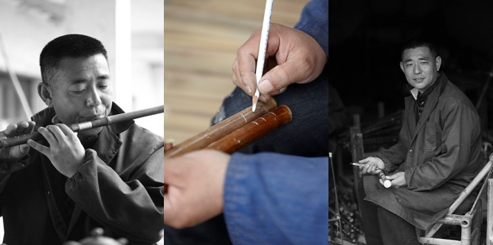 我不担心机器会对手工的技艺有什么摧毁性的影响。不,技术包含在自己的经验里,也只有当涉及到演奏的音色、音准时才看得出来真的造得好不好。竹子不是人工制品,生长的环境决定了竹子的内径、质地都是不规则的。好笛子最终依靠的是还制作者的经验判断,线该画在何处,孔应打在哪里。如果本身不谐音律,很难掌握调试的分寸。一个做乐器的人必须本身会必须会吹奏,吹响、吹准,音色好。我所招的每个工人都会吹笛子和箫。
