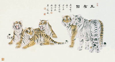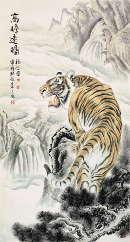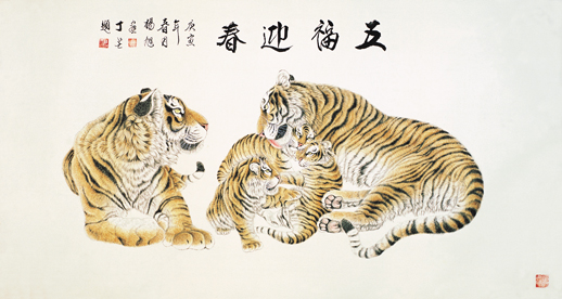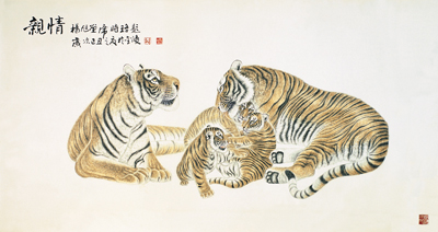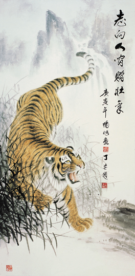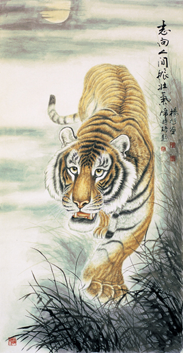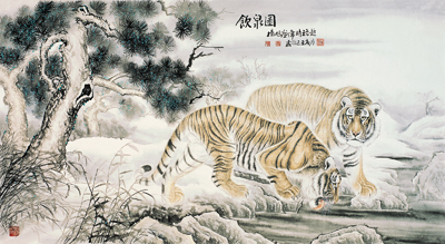 近年来,杨旭潜心静修工笔虎,为了更好地让老虎雄姿跃然纸上,他还对老虎的习性进行了长期的观察与揣摩,在“情”上与虎进行沟通,使其作品中的虎勇猛而不凶残,具神威而无淫威,表现出了老虎生活的多侧面和老虎性情的多样化。