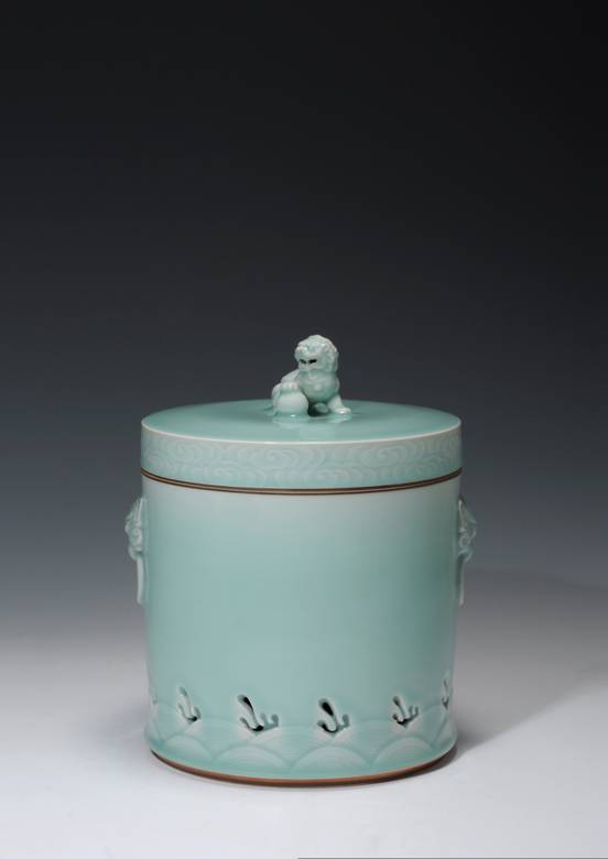 当我们一次再一次地品读欣赏陈永德老师青瓷作品,如玉般圆润,于温柔敦厚委婉含蓄中透出闲散淡远的自然之美,其实就是看到了他憨直、随和、中庸的好好秉性的具体表述。他的作品个性鲜明,工艺考良,釉彩润和,灵动温馨。在他家楼上的作品陈列室,我看到一件被陈永德自己作为永久珍藏的作品《壁》,直径30多公分,一个扁圆形中间一个圆孔,正规器型极其简单,通体浑厚圆润,一目了然。但你怎么看,它就是一个圆圆润润找不着半点瑕疵的玉璧,那是陈永德反复不知多少次试制成功的青瓷作品。他新创作的《香薰》器型与众不同,敦实大气、寓意深刻:一尊幼狮憨态可掬卧于顶盖中央,上沿的祥云纹和下沿的海浪纹遥相呼应,试想,当一注淡淡地熏香从小狮子的嘴里袅袅而起,在纯净似玉的背景里飘香除异,避邪纳吉,是多么彰显尊贵。作品《香薰》全面彰显了创作者思维空间的厚重、设计功底的扎实、刻花技艺的精湛、刀法技巧的娴熟、搅胎拉坯工艺的精美。陈永德每一年都有几款新作展现,所有创作特别重视在釉色的基础上,锻造出青瓷的质地之美,他能将青瓷胎、釉结合所能达到的温润如玉表现得淋漓尽致。譬如他的作品《滴泉》,通身圆润协调,釉色纯净,一如宝溪山崖石缝间漏下的滴泉,仔细聆听,仿佛能够听到岁月的流逝,历史的变迁,生命在诞生、成长.....欣赏陈永德大师的作品,既可以领略到自然的柔美、传统的凝重,还可以感觉到创新的时代脉动,未来的希冀。