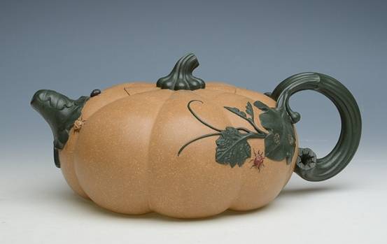 吴伟华说,从17岁进入长兴紫砂厂学艺开始就无法挣脱他的紫砂梦魇。当他已然明白,这不只是得到一个赖以生存饭碗,而是命运让他走近了艺术殿堂的门槛,就没有敢停止练书法学绘画刻壶,读书找资料绘草图设计,槌泥打身筒修明针制壶。1985年进入天津美术学院陶瓷专业(原雕塑系)跟随刘建强、秦征、张世范、吴恩海等教授拜师学习深造,更敦促他对紫砂艺术的孜孜不倦乃至今天仍然兴致怏然。我们问他,如逐梦般痴迷且几十年矢志不渝有什么原因么?吴伟华大师说:“开始我也很想知道除了兴趣以外的为什么,直很多年前我祖父吴德堂祖叔吴友庆制作的那两把紫砂壶被发掘以后,我才想,是不是我骨子里也带着点紫砂文化的遗传基因啊?”(其一,《南瓜壶》,壶身铭:“疾苦,爱妻罗云娣,有温饱是一大快事,友庆手捏於光绪二十三年长兴白岘吴芥口记吴德堂”、有瓜之命也;)其二,碗壶,壶銘:“春风花浪,刘云石,饮之清心,葵亥春”,底款:咏诗)
