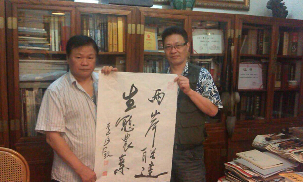 (周国胜先生与台湾艺术大师、美国知名华侨、和谐中国书画院院士李民钦先生合影)