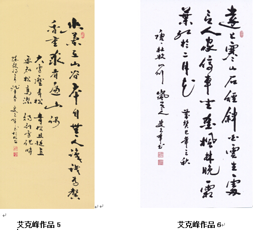艾克峰是一位德艺双馨的学者型书法家,有谦和儒雅的风范,积淀数十载的书法造诣,成果丰硕蔚为显著。在长期的书法实践中汲古融今,勇于创新,出新意于法度之中,奇妙理于豪放之外,其书法作品,大气流畅,繁而不冗,变化自如,师法自然,似有名家痕迹,实乃自成一家,形成了豁达开朗,流畅自然的独特风格。淡定自然,宠辱不惊的风格,已然融入浓浓的墨池中。使作品充满着生命的张力,能于流动变化之中将传统法则与个性表现熔为一炉,在书坛上赢得了很高的赞誉。