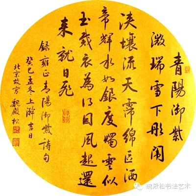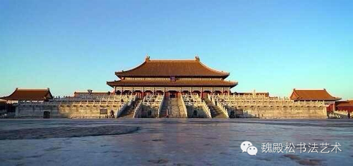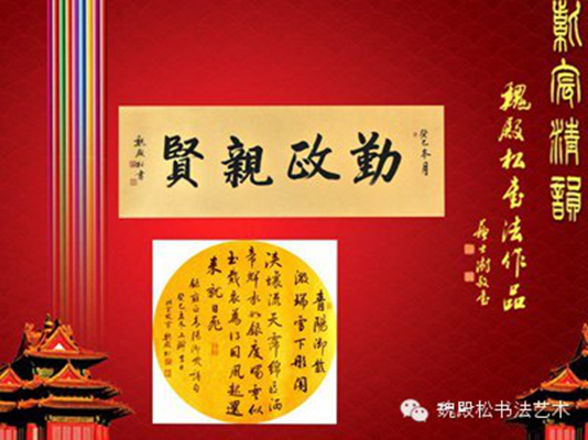 魏殿松先生作为身在故宫二十多年的书法家,故宫博物院丰厚的馆藏书法精品不断启迪他的艺术悟性、滋润他的书艺心田,使他的作品流露出深厚底蕴和皇家气派。他特别酷爱皇宫流行的“馆阁体”,在启功、刘炳森等书法大师影响和指导下,他坚持潜心研习历代名家之宝,潜心研读书法理论,书法作品气象正大、行云流水,受到众多专家和书法爱好者好评。