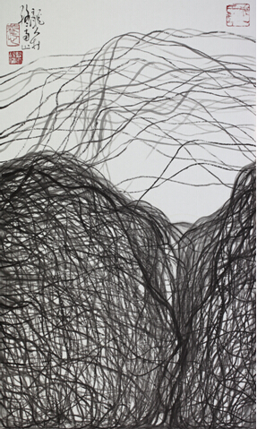 樊洲(1953~),中国画家,韵律山水画开创者。早年曾得到长安画派大师石鲁、康师尧先生悉心指导,1992年开始远离城市隐居秦岭终南山,将心灵投入广袤的艺术创作中。樊洲对古琴、太极、古诗词以及道释思想的深入研究与实修奠定了他深厚的文化修养,提出“物我相忘,因缘生发”的创作理念。开创了曲线交织画法。樊洲将中国传统文化“道”与“气”融入山水画创作中,把视觉的抽象性和传统文化的精神性有机结合在一起,以极具音乐感和书法意趣的线条作为独特的艺术语言,樊洲的山水画从自然的生态结构演化为表现当代人的精神情感,其画面一改瀑布流泉、烟霞雾霭、峭壁巨岩的视觉秩序,而成为“在”与“非在”、“空”与“非空”的哲学隐喻。