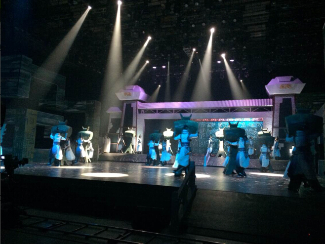 记者在现场看到点亮的舞台充满中国风元素,简约的设计但不失大气唯美,眼前一群穿越千年风雨而来的舞者,艺术再现那段商代铸造方罍之王的盛大场景,此为皿之音-祈的一个场景。