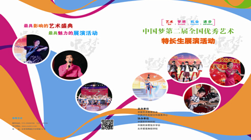 由中国对外友好合作服务中心、中国艺术教育协会主办的中国梦全国文化艺术展演系列活动-第二届中国梦全国优秀艺术特长生展演活动于2014年8月1日在京正式启动。该活动以弘扬民族文化、提供展示平台、发现优秀艺术人才、推出艺术新星为宗旨。来自全国的大、中、小学、艺术院校、艺术培训机构、幼儿园文艺团体及文艺文艺爱好者参加。活动内容有开幕式、大合影、评比、专家讲座、闭幕式、形象大使选拔和晚会录制。