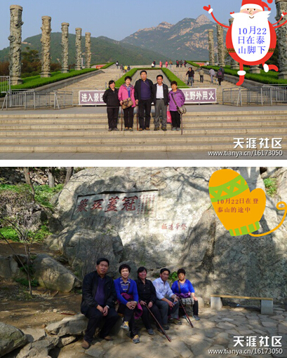 第二次登泰山,是两年前的10月23日,巧的是时间和这次隔两年差一天。那次是我带领垦区20多位同仁,从中天门登上了南天门。一路疲劳一路拍照,欣赏风光的同时,也欣赏了大量的名家书法作品,感受是泰山真不愧是世界自然遗产和文化遗产。