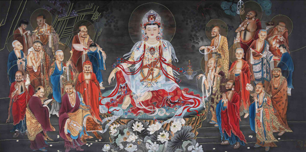 诗意的中国,北方银装素裹,南疆万紫千红,壮丽江山如此多娇,为艺术家提供了无限的创作题材,2015“本位与艺术”迎春画展,应邀来自北京广州深圳15位艺术家60余件风格各异的精品力作,为花都人民带来了一次文化盛宴。著名画家深圳美术家协会主席、关山月美术馆馆长陈湘波先生的作品,以朱砂写观音法相,承古贤遗意,有吴带当风之妙,笔化缘机,气静神合,得经义而成自家图迹。香港中文大学教授,著名画家、古书画鉴定家、学者张继刚先生,承古法得化育生机,胷中秋壑,藏玉之质,图中罗汉随心相而幻化,姿态各异,莲花世界,定慧禅心。画家刘春汐女士作品,淸丽淡雅,设色诸异,山水佛道仕女花鸟各具精微,始人读之如沐浴春风。东莞领南画院副院长知名山水画家关坚先生承其家学,得关山月先生遗韵,写山川壮丽之景,引人入胜,使赏者不能忘怀。画家卢婉仪女士以细笔写花卉工虫,精致纷彩,独妙于纸上。文祯非,丁琳,黃治成、陈俊宇、程平、鲁珊、薛扬、陈濯非、戴榕泽、伍诗妮诸家作品,山水花卉人物,风貌独树,尽得画学之奥妙,非藻丽华词所能论尽矣。