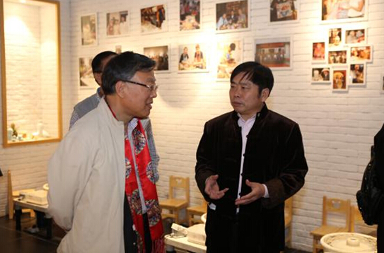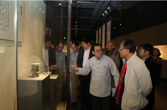 图:馆长陈进林先生陪同嘉宾参观北京陶瓷艺术馆