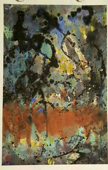 除水墨诗意画外,画家还带来了为诗人舒洁长诗《仓央嘉措》新作的插图数十幅。值得注意的是,它们跨出了水墨大门,引进了色彩,水墨、水彩的交融,构建成这些作品的主调。水墨、水彩交融,是传统中国画的另类,无疑,这些尝试,昭示着画家在寻求新的视角,新的空间,新的意境。