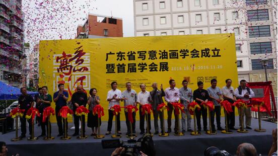 戴士和、王琨、肖谷、刘杰、刘新、李亿敏、马志明、陈和西、王锐、封冶国、孙洪敏、陈国标、杨尧、吴锐鸿、王畅怀为 “写意之河——广东省写意油画学会成立暨首届学会展”剪彩