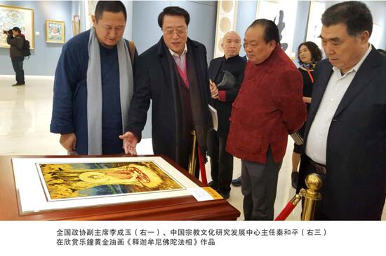 此次展出是一次开拓艺术视野、丰富艺术主题、创新艺术形式的宗教文化艺术展,苏士澍(中国书法家协会主席)、戴乐鐘(世界黄金油画创始人)、刘勃舒(中央美院副院长)、张志和(故宫博物院书法研究所所长)等著名书画艺术家齐聚一堂,用书法、油画、国画等艺术形式,让国人感受到了中国宗教艺术的独特魅力与文化内涵!