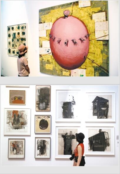近日,“人类思考,上帝发笑”茹小凡新作及回顾作品展在江苏苏州博物馆开展。共展出旅法画家茹小凡近40年创作的85件作品,其作品具有深厚的中国传统文化修养,又受到法国文化熏陶,在绘画艺术上独成一家。此次展览由著名建筑师贝聿铭之子贝建中及法国巴黎国立高等美术学院出版社社长帕斯卡尔勒女士共同担任策展人,将持续到7月21日。图为2017年6月6日,观众在参观旅法画家茹小凡的作品。