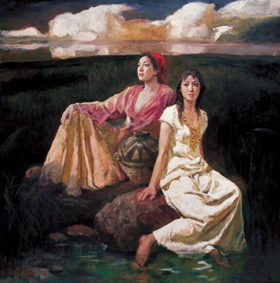曹雕油画作品《天山姐妹》150x150Cm市场参考价520000元