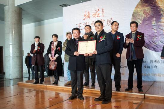 2017年12月21日上午,由淄博市文联主办,淄博市美术家协会、淄博市博物馆承办,北京倍瑄文化机构、北京798先声画廊、换鹅书会协办的“焕彩”王清州画展开幕式在淄博市博物馆举行。淄博市文联主席王东宏,淄博市美协主席范杰,中央美院赵力教授,知名画家曹宗田、孙柏钧、蒲君,滨州市书法家协会秘书长、副主席陈杰等来宾出席了开幕式。