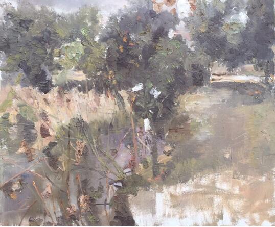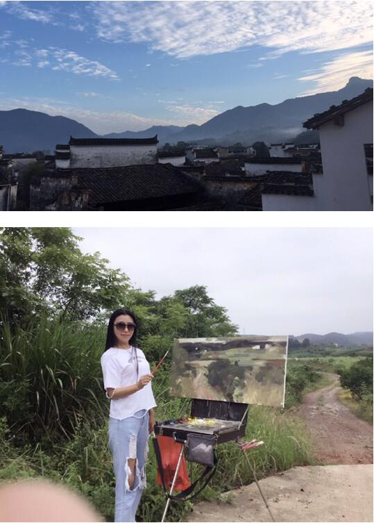 邵湘蓉为了方便写生,她特意买了一辆越野车,有一次去壶瓶山参加写生学习活动,她单独驾驶奔波300多公里,道路险峻,差点跌入悬崖,真的是有惊无险,来到写生基地时汗水早己湿透了衣服。在一起写生的著名画家陈和西、曲湘建、段江华、凯文、任传文等老师们都被她追求艺术的精神所深深感动。今年七月,她顶着烈日来到太行山写生,其作品《巍巍太行》气势磅礴,饱含着她对革命根据地的敬仰之情,作品无不展示着太行精神。邵湘蓉一个人在安徽写生二十多天,创作出了江南水乡的精美之作。
