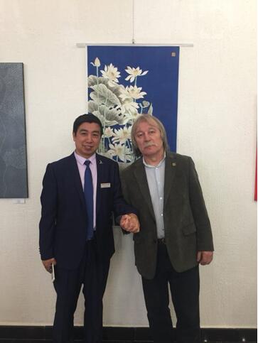 In July 1, 2018, the Organizing Committee of the international fine arts Grand Prix held a double Exhibition for the tutor of the Art College of Renmin University of China and Hu Guangsheng and Song Fusheng, a painter of the national first class artist. The chairman of the Grand Prix organizing committee, Salomo, delivered an important speech. Liu Hankai, as the expert judge of the Grand Prix, thanked the leaders, guests and famous painters from China, Russia, Lithuania, Belarus, Ukraine, India and other countries. Hu Guangsheng created a Chinese painting for the Organizing Committee of the International Grand Prix, and was well received by the leaders of the Organizing Committee and artists from all over the world. Many foreign artists, through the chairman of sands (translation), consulted the teacher's painting (texture) how to do the problem, the teacher made the explanation. After the meeting, he exchanged interviews with Russian mayors, German mayors and artists. It shows the harmonious coexistence of Chinese artists and artists from all over the world, and let the flowers of Chinese traditional culture bloom throughout the world.