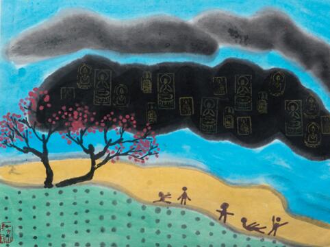 彩墨 我们的新居136x68 2016年 纸本中国画颜料