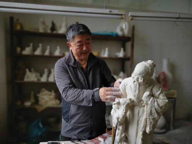 近日,原天津美院雕塑系主任刘建强教授到中国工艺美术大师陈明良工作室与陈明良大师艺术交流瓷塑创作, 双方表示深受对方启发。