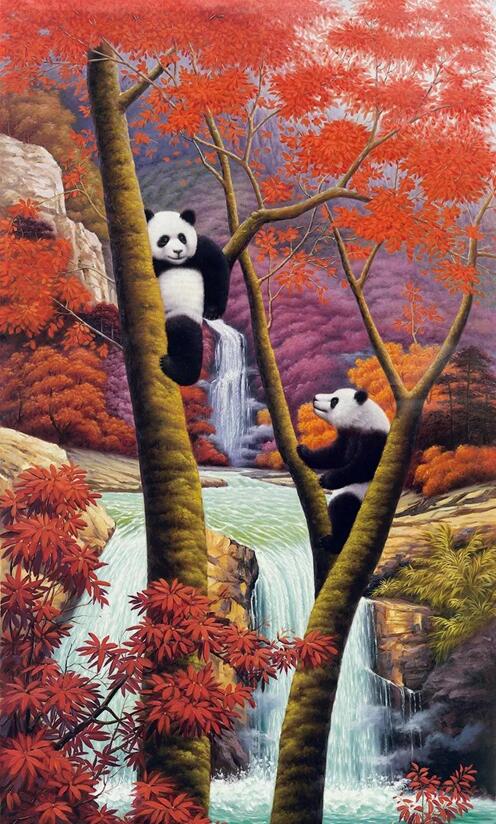 熊猫画家吴长江向奥朗德(François Hollande)总统赠送熊猫作品《中华瑰宝拥抱世界》