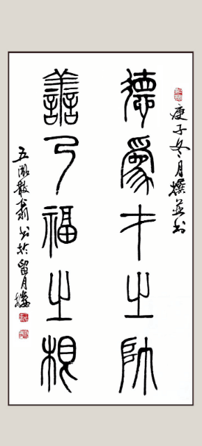 王老师的人生经历也印证了古人所说的“不经一番寒彻骨,怎得梅花扑鼻香”,王老师选择了人生的坚守、苦涩、甚至是枯燥之路,而且取得了丰硕的成果,成为我们当代中国马家窑文化的领军人物和马家窑文化学术的开拓者,用现在的话讲,学科带头人,王老师不是专业的书法家,而和我国历史上那些著名的书法家一样,不以书法谋生,或不靠书法吃饭,像我们唐宋的八大家中的颜真卿、苏东坡,王老师就是这样一位学者的书法家,有学识、有学术成果,匠人靠勤学苦练,学者靠深厚的功底,匠人用眼镜看世界,学者用心灵观察世界,匠人眼中盯着名利,而王老师眼中盯着的是中华文明五千年灿烂的文化,王老师才能在天地人的大境界中畅游,而不是在人事物小圈里挣扎,在王老师的书法中看出一种深厚的文化底蕴,一种来自远古的文化气息,风格上具有自成一体、审美上能够独具魅力。