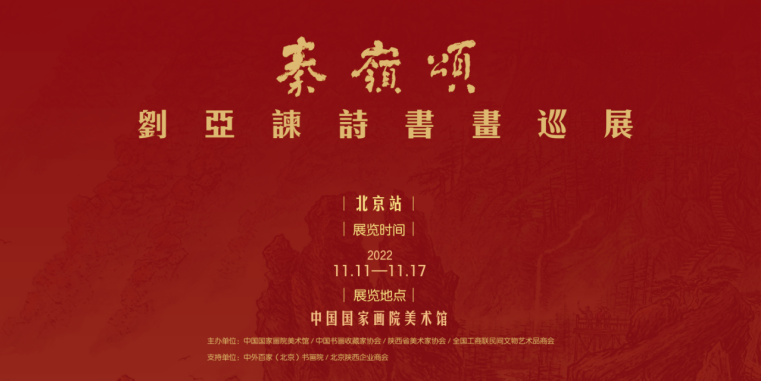 “秦岭颂——刘亚谏诗书画巡展”,于2022年11月11日——17日在中国国家画院美术馆举办!这次以秦岭为主题的艺术展,由中国国家画院、中国书画收藏家协会、陕西省美术家协会、全国工商联民间文物艺术品商会主办,展出了刘亚谏先生几十年来描绘秦岭的美术作品100幅及秦岭自作诗词书法作品20幅。这120幅秦岭诗书画作品,从不同角度歌颂了秦岭之美,抒发了他对秦岭和家乡的热爱之情。