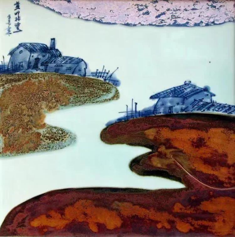 2、 The "Ceramic Mural" series - ceramic printmaking and color painting works, is his most representative work. His modern painting consciousness combined with traditional underglaze color craftsmanship skills in the future, making every artwork showcase its traditional Eastern charm everywhere, while also expressing an indescribable and indescribable driving force in abstract art. He exudes emotions and imagination from the heart, unconsciously combining and creating imagery, This is also his particularly outstanding performance in his decorative creations, mainly focusing on high relief pottery murals, pottery prints, colored glazed murals, and porcelain plate painting. His pottery plate paintings are quite poetic and picturesque.