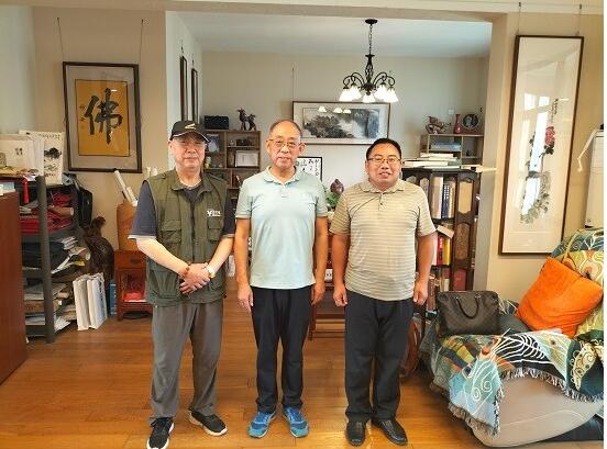 活动策划人马祥苍拜访中国书法家协会理事、安徽省书法家协会主席吴雪(中)等艺术界大家(中国经贸文化网 供图)