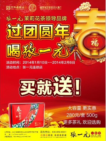 从1月10日至2月6日新春民俗风情节活动期间,张一元将推出深受百姓喜爱的张一元精品花茶及绿茶、乌龙茶等数百种茶品,以及多款礼盒包装,并有丰富的买赠活动,将满足消费者的不同需求。