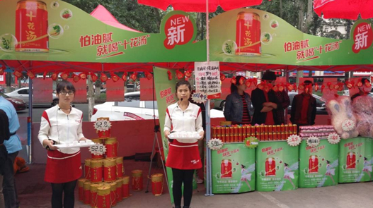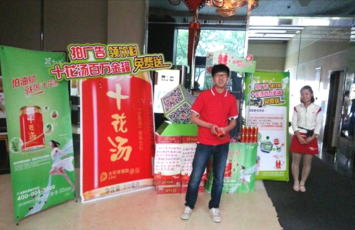 有业内人士指出,“十花汤”此次的免费赠饮采用落地派发形式,目前在西安不少社区、写字楼及市区繁华地段搭建临时展区,消费者只需凭随手拍到的产品广告,即可现场无偿领取一罐。几乎为零门槛的促销方式,简单方便的参与方法,自然能吸引大批参与者。