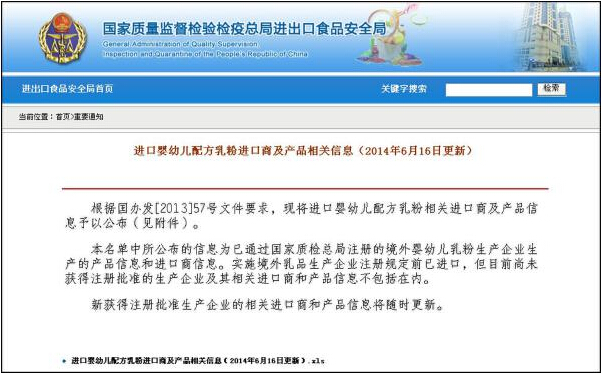 质检总局表示,名单中所有公布的信息均为已通过国家质检总局注册的境外婴幼儿乳粉生产企业的产品信息和进口商信息。这次进口奶粉品牌和进口商的公布,是延续5月6日公布的境外认证生产企业生产的奶粉品牌、进口商资料的进一步认证;是对一部分进口奶粉的许可及肯定。同时也意味着没有被质检总局认可的品牌将面临暂时无法进口的局面。