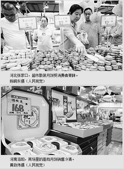 中秋节临近,月饼销售进入了传统旺季。在中央多条禁令及“节俭风”劲吹之下,河南洛阳当地一些商场内包装精美的高档月饼销售普遍惨淡。与此形成鲜明对比的是,在河北省张家口市宣化区,各大型超市推出的无包装月饼,因价廉又环保受到消费者青睐。