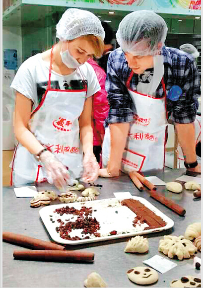 “真是太有趣了!和这么多人一起,用擀面杖压面团、做面包还是第一次。”带上围巾、头套等标准装备的潘驰俨然一名糕点制作师,向记者展示着辛勤劳动的成果,喜悦之情溢于言表。