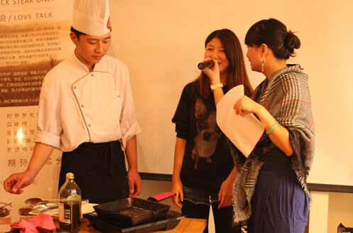 活动现场,来自爱路牛排的两位创始人姚柳扬、王阿诅分别介绍了爱路牛排的起源、品牌发展的过程以及销售模式。让现场的来宾们在有幸品尝爱路牛排的同时,也了解到它创立的初衷和意义。接下来就到了大家期待已久的品鉴环节,随着一盘盘牛排依次被摆放在来宾面前,飘香四溢,来宾们开始跃跃欲试,有的拿出手机开始拍照,准备发在微信中与朋友们分享,有的则迫不及待的拿起刀叉开始品尝。随着现场叮叮当当的刀叉杯盘的碰撞声的渐渐低落,大家满足的表情渐渐显露出来,纷纷谈论着牛排的美味。