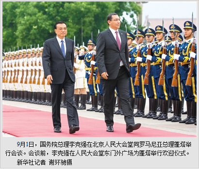 本报北京9月1日电 (记者吴乐珺)国务院总理李克强1日下午在人民大会堂同罗马尼亚总理蓬塔举行会谈。