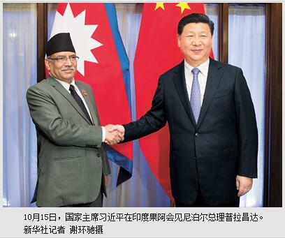 本报印度果阿10月15日电 (记者杜尚泽、邹松)国家主席习近平15日在印度果阿会见尼泊尔总理普拉昌达。