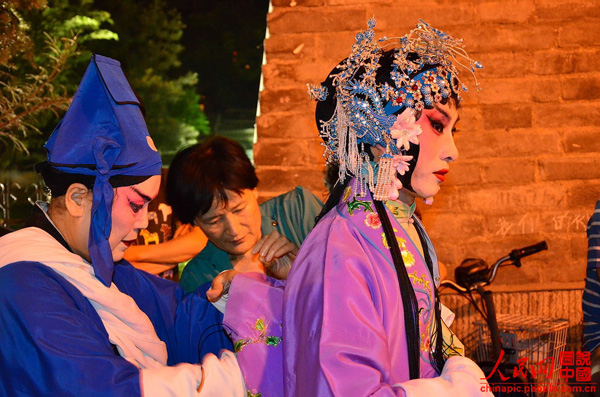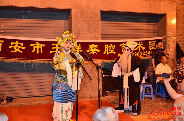 每当周一晚上去玉祥门外的环城公园散步时就听见一阵阵熟悉的秦腔唱声,随着秦声秦味的秦腔唱腔,走近一看是玉祥门的门洞里有一些人在唱秦腔,上前一打听,在这唱秦腔的是“西安市玉祥秦腔艺术团”的人,团长权先生告诉我他自幼爱好秦腔,还在玉祥门转盘未改造前就在转盘广场自唱自乐,后来转盘改建成花草树木后,就搬到玉祥门北边的门洞里,每周一和周四晚上的八点到十点,附件的居民八点前准时来到这里等待他们的演出,权团长说:我们这些人都是秦腔爱好者,从西安的四面八方聚集到这里来的,有老有少,有退休的也有上班的,为了一个共同的爱好大家走到一起来了,在西安好多秦腔自乐班里我们这里是年轻人最多的团。随着急促的打板声和高亢激昂的唱腔随拍几张,献给爱好文艺和秦腔的朋友们。