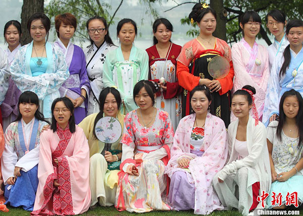 来自南京华夏文化传承社的五十多位汉文化爱好者齐聚在南京玄武湖畔,举行祭祀屈原仪式,弘扬传统文化,迎接端午佳节。端午节,又称端阳节、午日节、五月节等,最初是我国人们以祛病防疫的节日,后来传说爱国诗人屈原在这一天死去,也同时成了中国 汉 族 人 民 纪 念 屈原的传统节日,