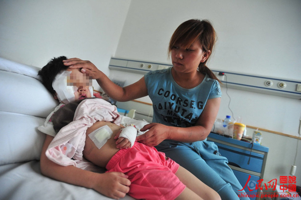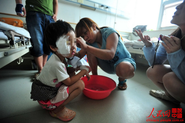 2013年7月13日下午,北京通州区台湖镇蒋辛庄内,一条身长一米多的藏獒突然窜出,将经过此处的女孩妞妞(化名)脸部咬伤。7月18日上午,在通州区台湖卫生院内,5岁女孩楠楠乖乖地坐在病床上,不时拿着亲戚送来的玩具在手里抚摸。看着妞妞脸上包着的纱布,她的爸爸霍先生伤心地抹着眼泪。