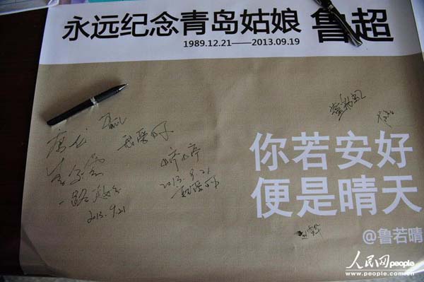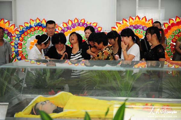 2013年9月21日上午,“最美抗癌女孩”鲁若晴的遗体告别仪式在青岛市黄岛区殡仪馆举行,鲁若晴生前的亲戚朋友以及众多自发而来的网友前来见鲁若晴最后一面。图片来源:CFP 版权作品、请勿转载