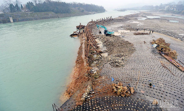 都管局相关负责人介绍,除此之外,还实施了对宝瓶口左岸山体的封闭加固,宝瓶口右岸齿墙的施工浇筑,同时进行了对鱼嘴、渠首二王庙顺埂护岸加固维修。8日上午,将杩槎卸载、砍断绳索后拉倒,让上游江水冲开坝体,内江顺流而下通过宝瓶口,成都平原也将恢复供水。